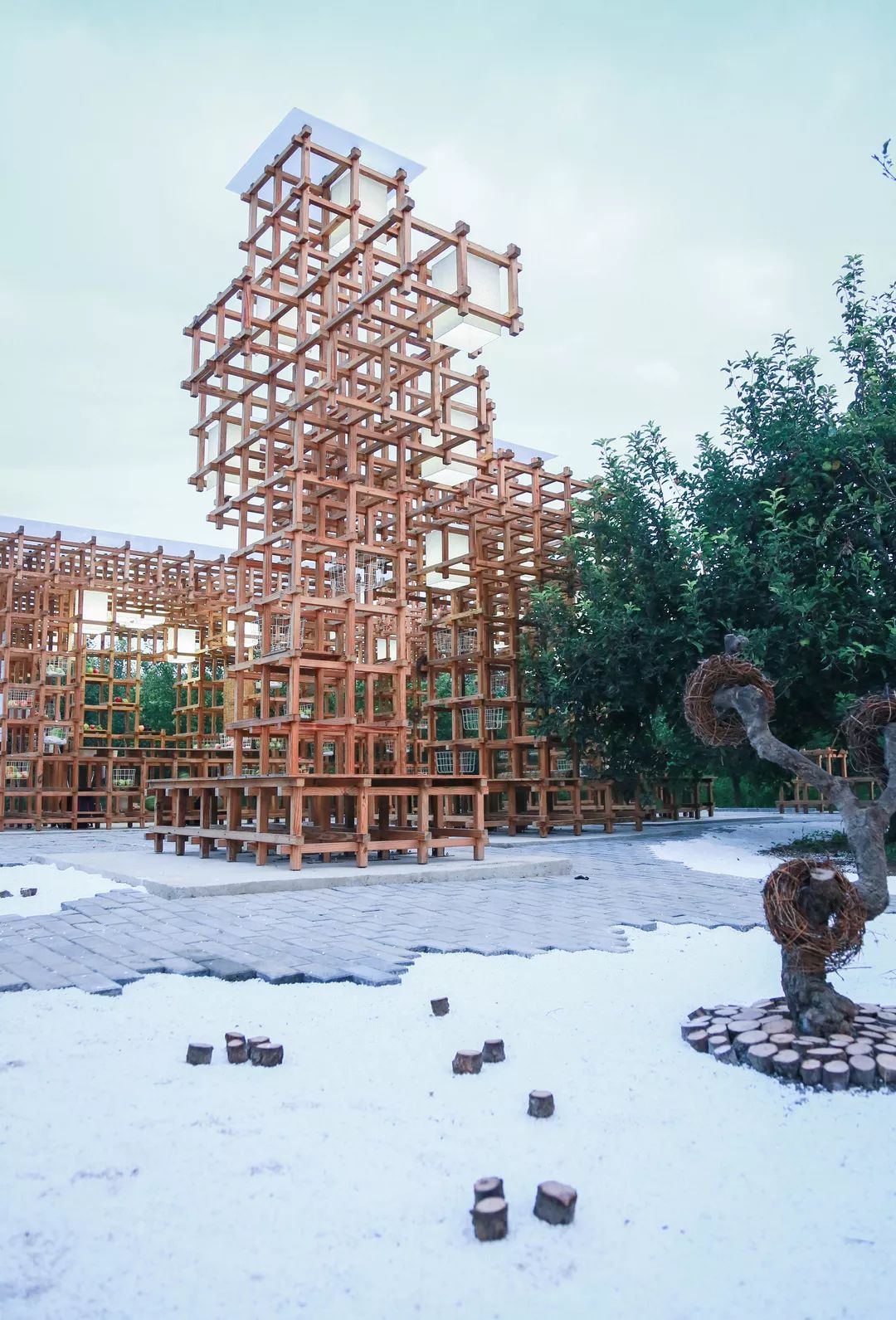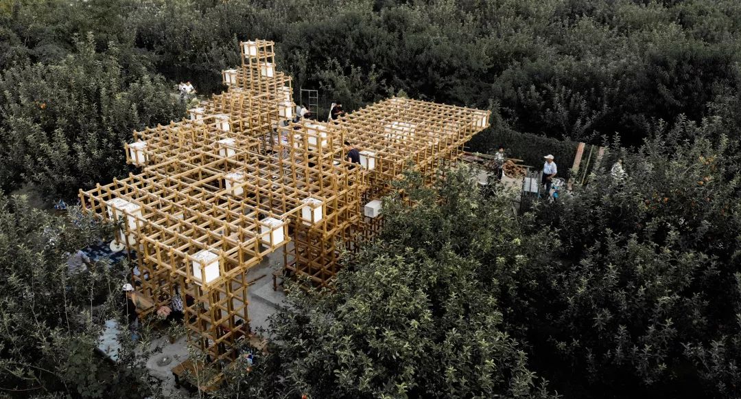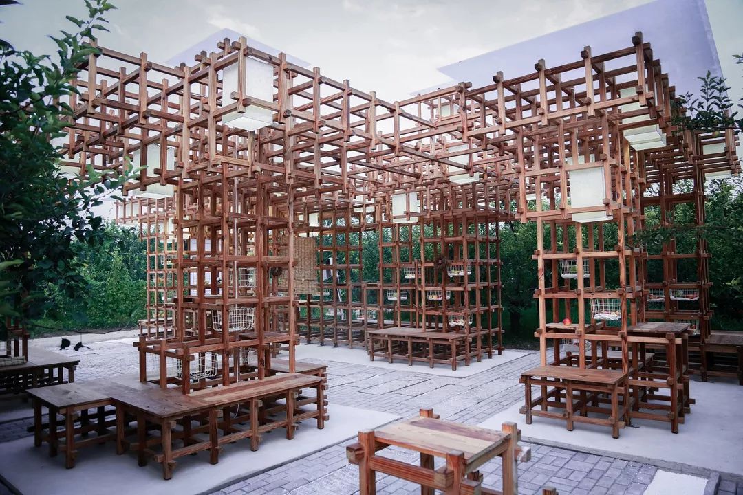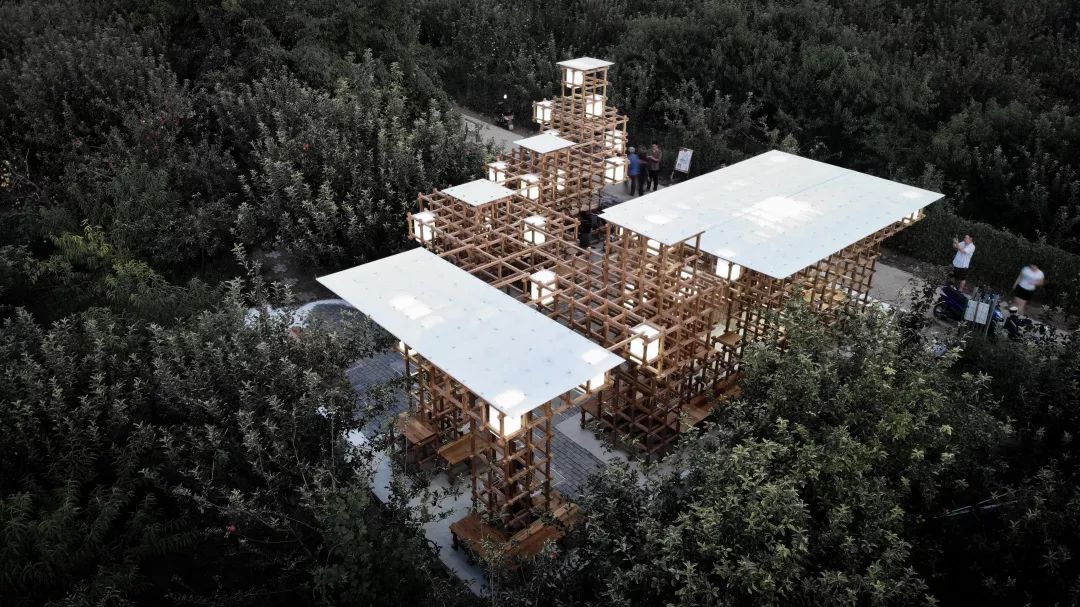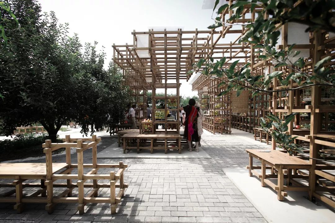 The wooden pixels form a variety of functional blocks, furniture and landscape pieces, which are well adapted to the scale of human-activity-architecture, satisfying a series of functional activities of fruit sales, fruit storage, fruit processing, fruit display, leisure recreation, and activities of various crowds at different time, carrying various practicability, adapting to the phenomenon of rural tourism tides. It realizes the wooden pixel pavilion, revitalizes the century-old pear orchard with the refreshing fragrance.