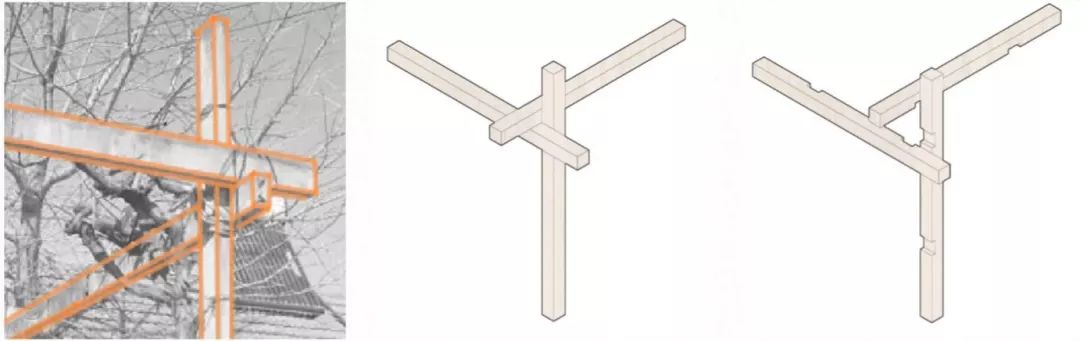 以当地百姓常用的节点构造方式为起点,结合传统榫卯的形式,并在预搭建的过程里优化了构造设计,实现了根植于当地智慧的节点转译。