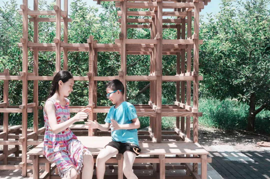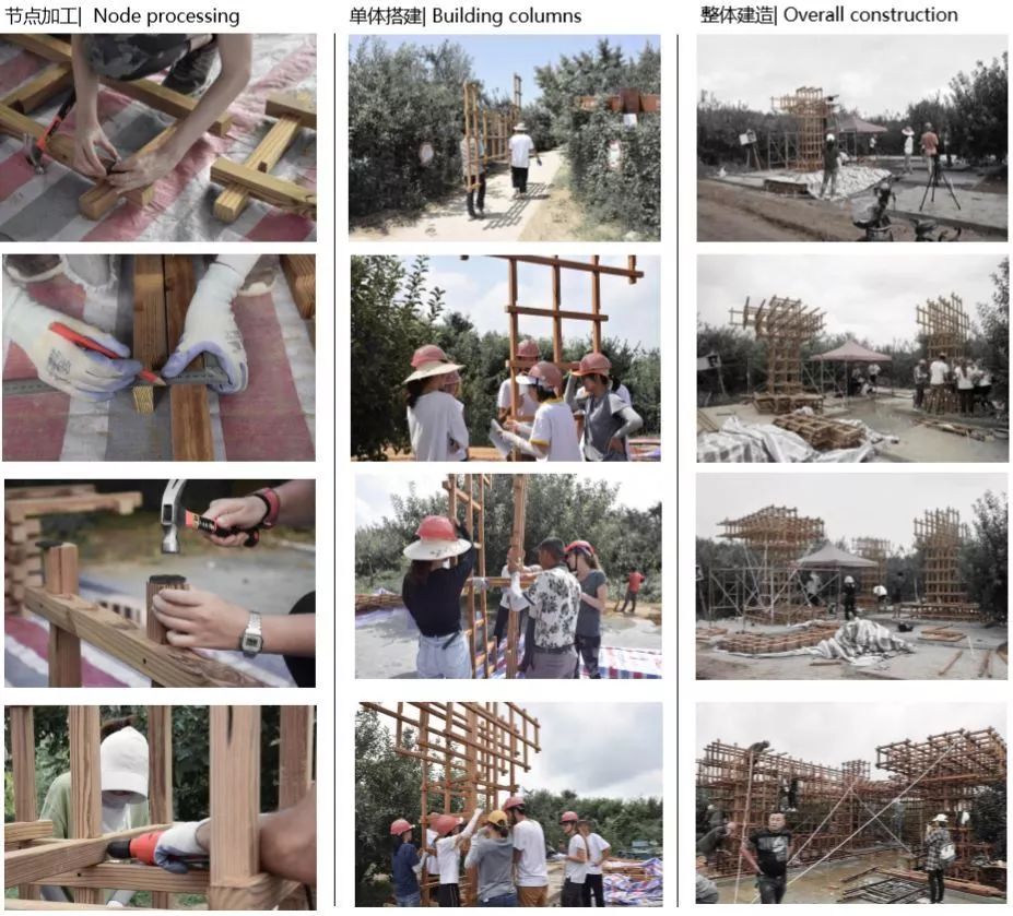 较细的木材在赋予建筑整体轻盈和通透感的同时,也给施工带来了便利性,提前预制的构件为快速搭建提供了可能性,使整个建筑搭建过程中学生参与度和自主完成度大大提高。