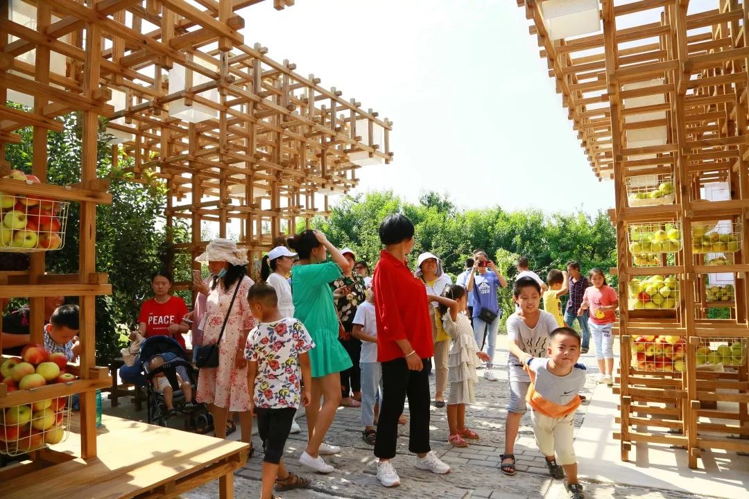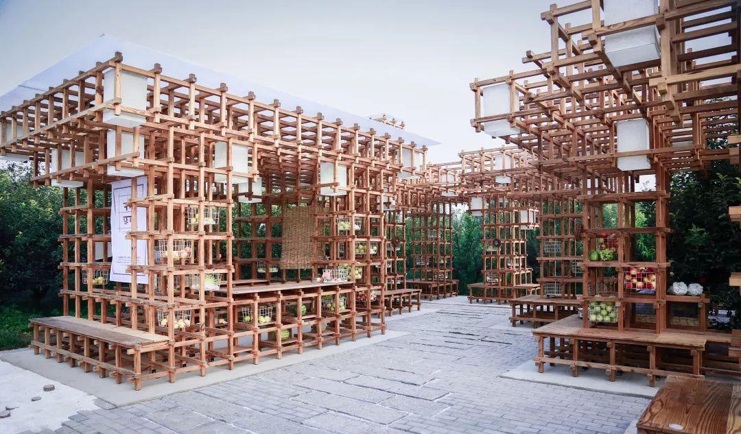 木质像素构成各式功能体块、家具和景观小品,很好地适应人-活动-建筑的尺度,满足了果品售卖-果物储藏-果品加工-果品展示-休闲游憩的一系列功能活动;针对不同人群和不同时段,承载多样功能,适应乡村旅游潮汐化的现象,真正实现木质像素搭建木亭别宴,鲜果飘香焕活百年梨园。