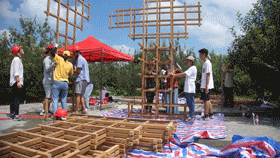 盛夏八月,联队聚首泗阳,正式开始为期18天的建造生活。现场建造、后勤采购、宣传撰稿、视频呈现…团队分工明确、各司其职,齐心协力、克服万难,不畏骄阳、吃苦耐劳,终于亲眼见证了方案从草图构思到实地建成的神奇转变。