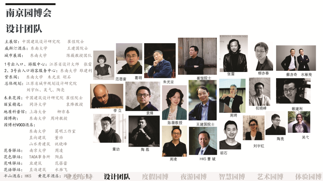 本届园博会的建筑设计工作由中国工程院崔愷、王建国院士领衔,全国20多个知名大师团队、百家专业设计团队共同完成;建设由中国建筑第八工程局总承包公司牵头EPC总包完成。江苏省园艺博览会自2000年以来已成功举办了10届,成为延续长江历史文脉、展示江苏生态文明建设成果、传承园林技艺的重要窗口平台。