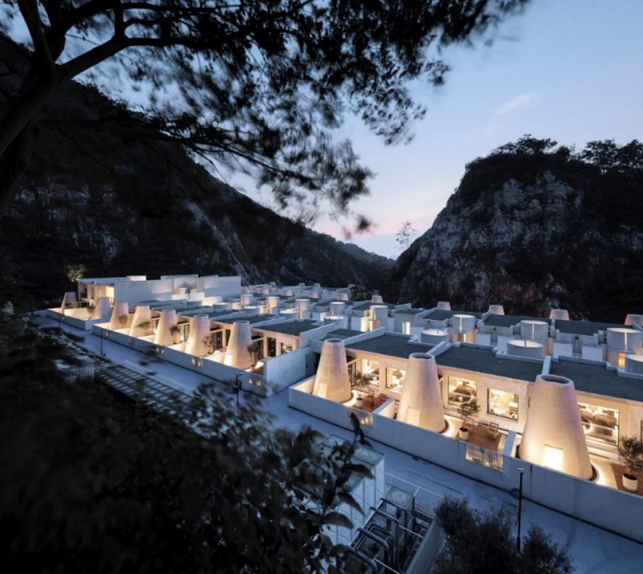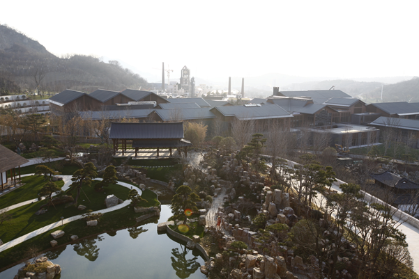 主展馆的选址围绕两座水泥厂的遗存展开。在工业遗存的缝隙中,通过恰当的空间整理和介入策略,置入新的建筑功能,通过新的置入,激发旧的活力,新旧之间的互动,产生丰富的空间张力。“轻介入”的策略:通过立体格构的提示,在凌乱的场地上引入清晰的尺度和秩序,精致纤细的70构件体系,作为遮阳、绿化的依附,体现新建筑轻盈、柔和的态度。旧建筑采用尽可能朴素、原真的表面肌理处理,使工业遗存的封闭、苍凉、粗犷,在新建筑的通透、纯净、精致的对比之下,营造出独特的氛围和格调。傲途格酒店通过层层递进的多重院落,用现代语言诠释一处东方秘境。保留的工业筒仓和工业设备则萃取为酒店公共空间的灵魂,为酒店注入个性与意蕴。